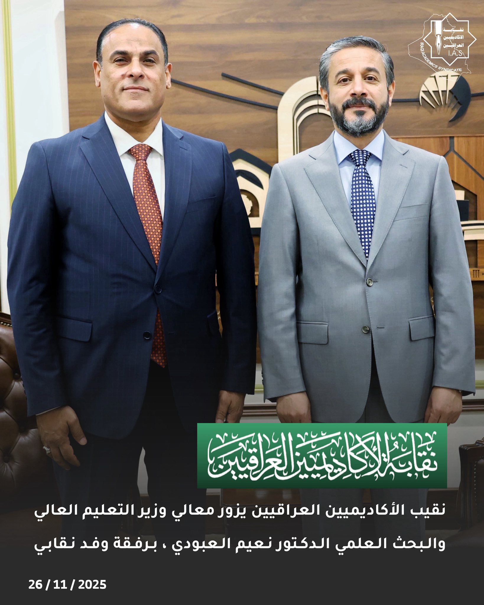 من جهته، ثمّن معالي الدكتور نعيم العبودي هذه الزيارة، معرباً عن شكره وامتنانه لاهتمام النقابة وحرصها على تعزيز التعاون المشترك بما يخدم المسيرة العلمية في العراق.