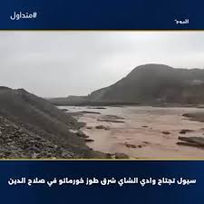 متابعة ( انا ) نتيجة الامطار الكبيرة غمرت سيول وادي الشاي في منطقة داقوق الوديان القريبة من نهر العظيم